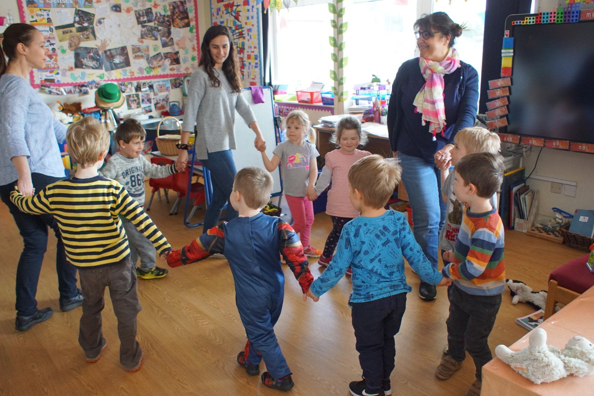 The lessons focus on learning the French language through play, songs and dance. In this class, the children start to study sounds and learn to recognise and trace letters.
